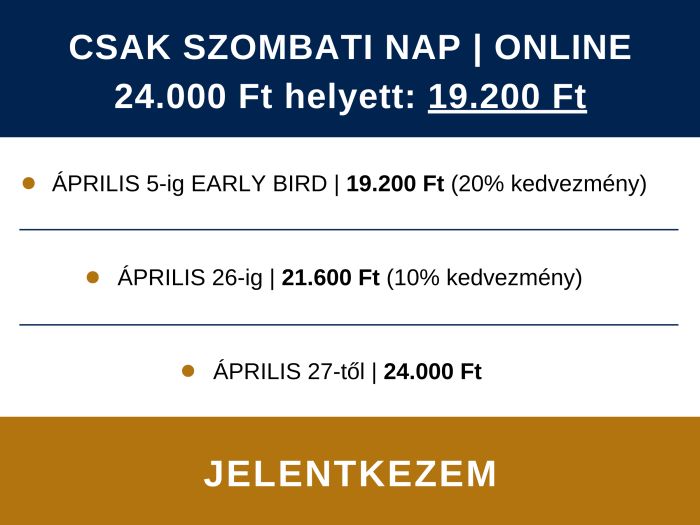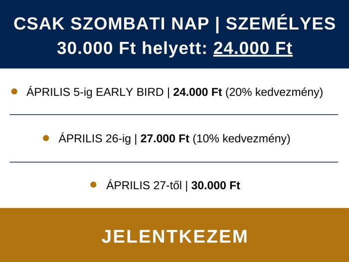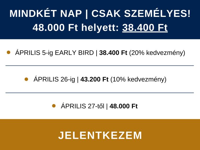 EARLY BIRD kedvezmény: Április 5-ig (vasárnap éjfélig)!