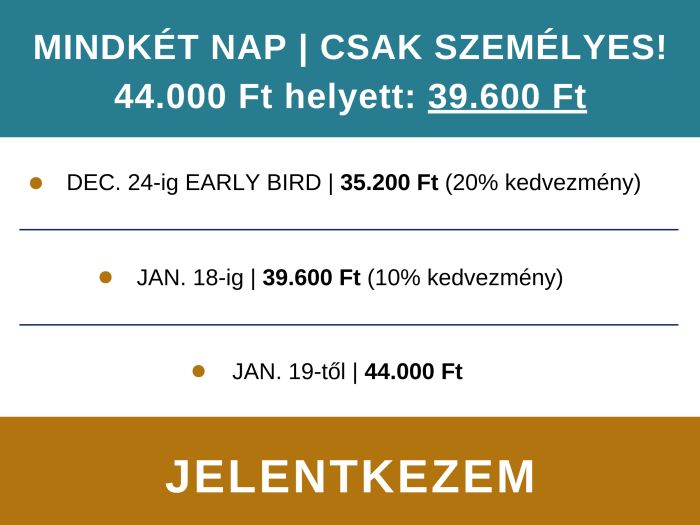 SZEMÉLYES RÉSZVÉTELŰ HELYEK KORLÁTOZOTT SZÁMBAN!